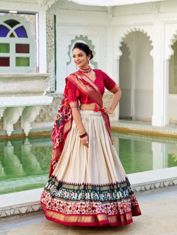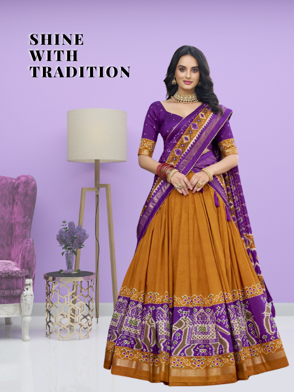 Exquisite Tussar Silk Lehenga – Radiant Floral & Patola Print!