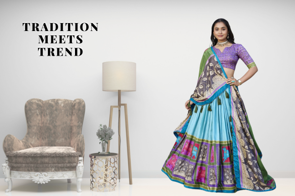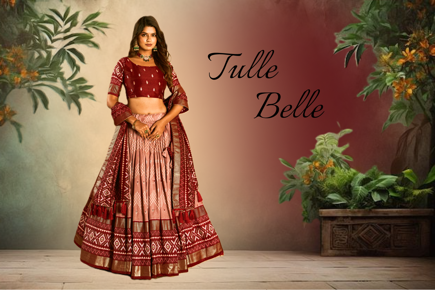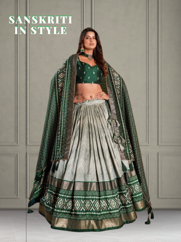 Stunning Silk Lehenga Set – Floral & Patola Print for Blissful Elegance!