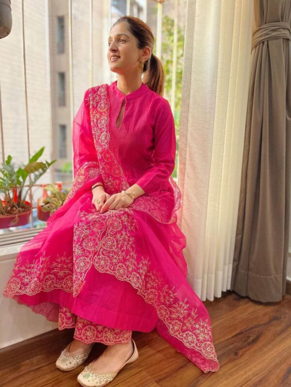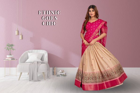 Enchanting Tussar Silk Festive Lehenga | Ruby & Beige