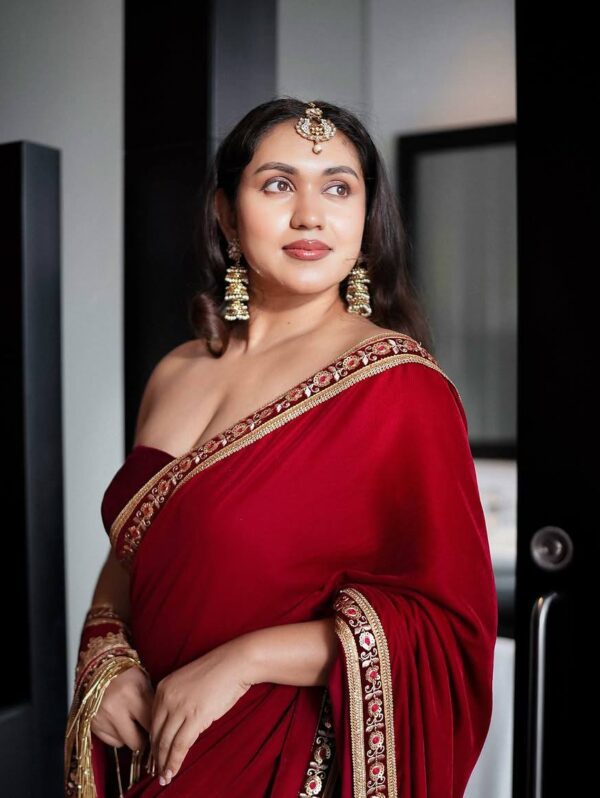 Deep Burgundy Tussar Silk Lehenga – Floral Foil Elegance