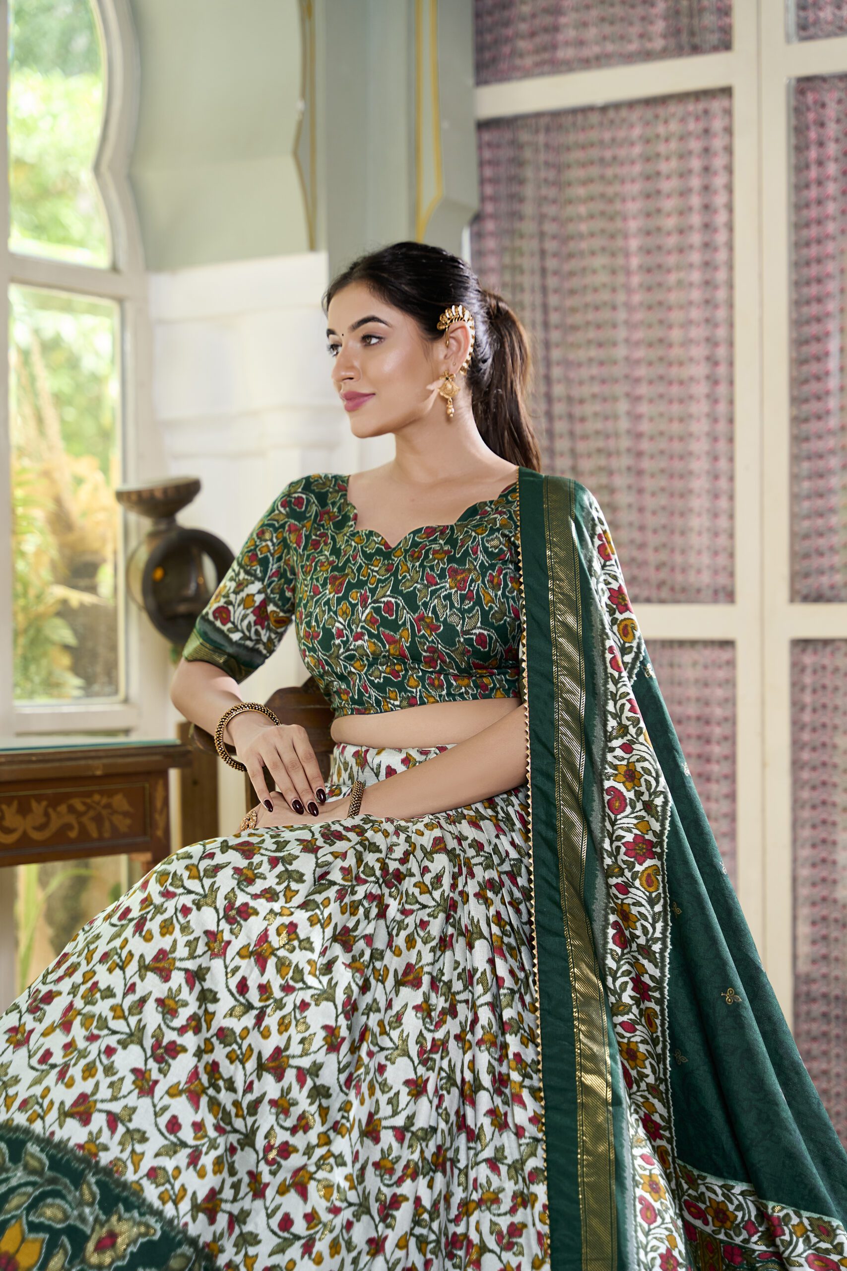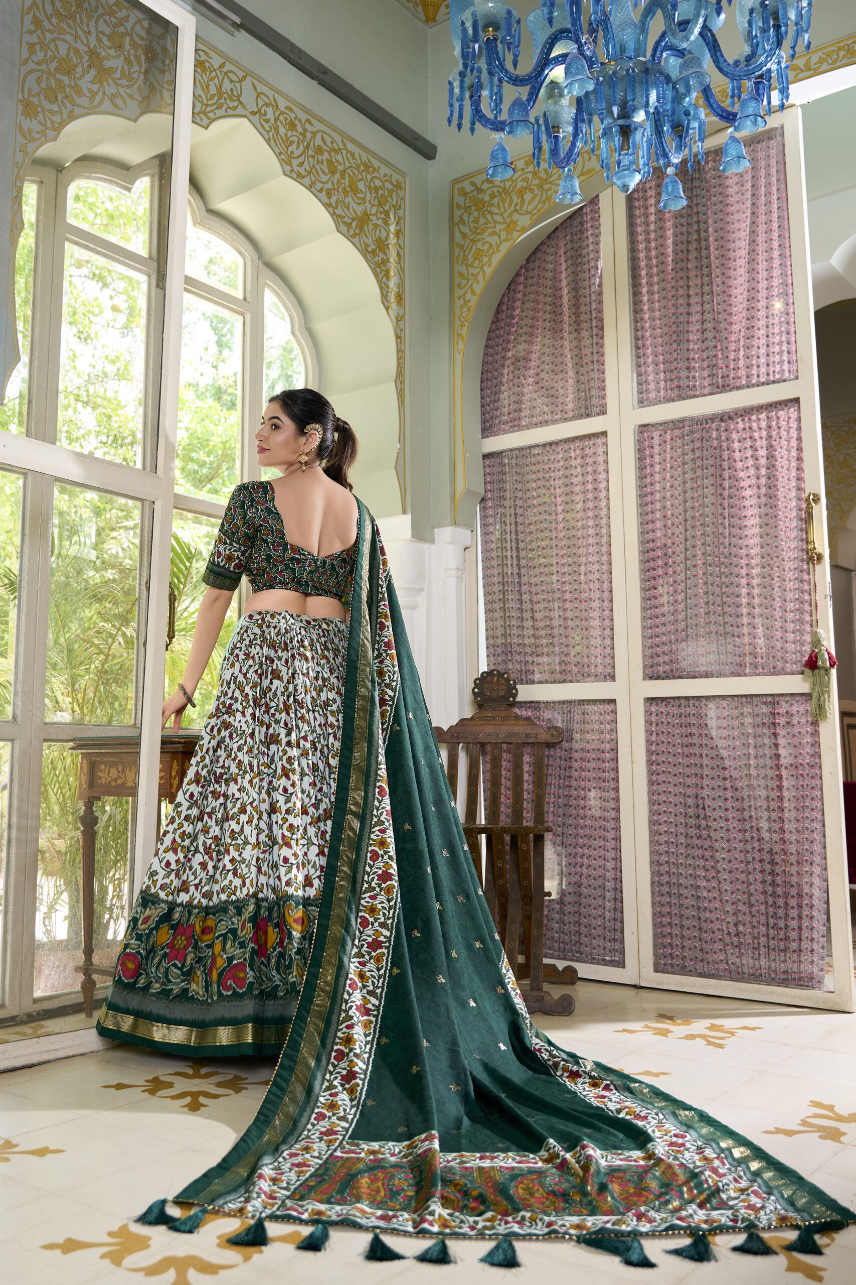 Exquisite Dark Green Tussar Silk Lehenga with Floral Foil Work
