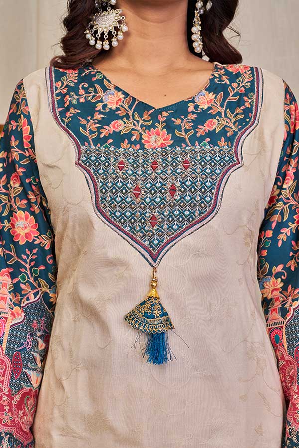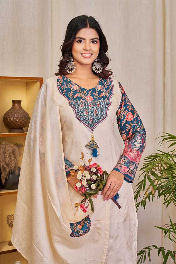 It is paired with matching pants and pure wiving zari jacard dupatta. A must’ve for your upcoming gatherings.