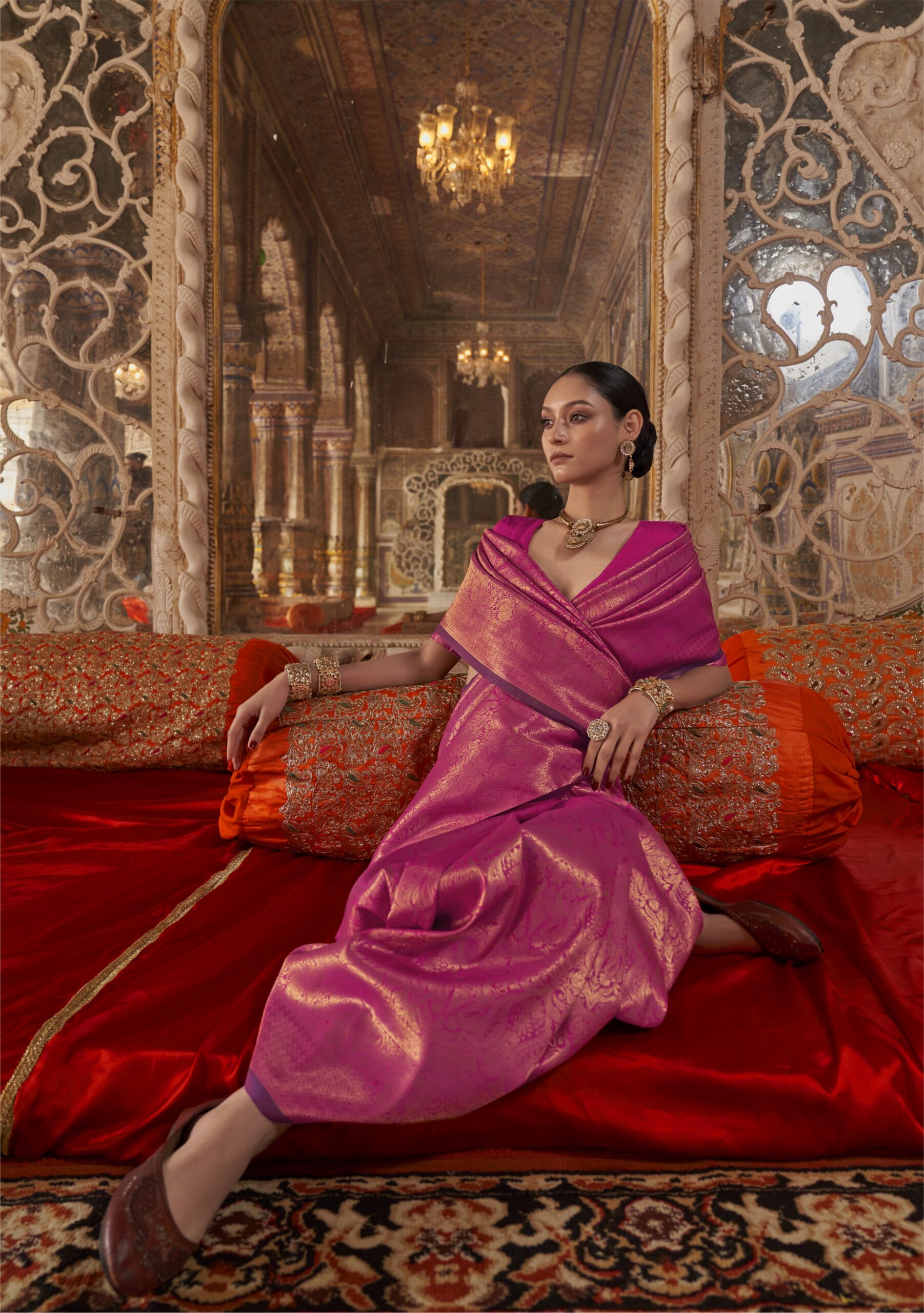 Be the first to review “Rajwada Rani Pink Zari Silk Saree”